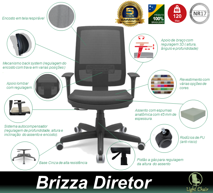 Obs: Aqui na Light Chair o cliente pode personalizar sua cadeira. Veja as opções