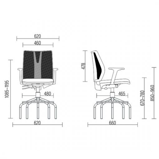 ■ Braços reguláveis em altura através de botão lateral em formato de T contendo apoia braço em Polipropileno.