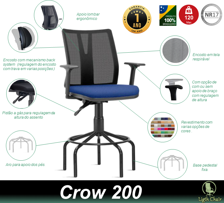 Obs: Aqui na Light Chair o cliente pode personalizar sua cadeira. Veja as opções