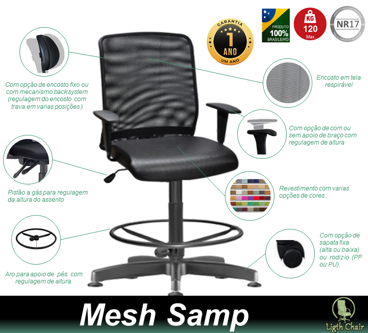 A cadeira Mesh Samp possui: