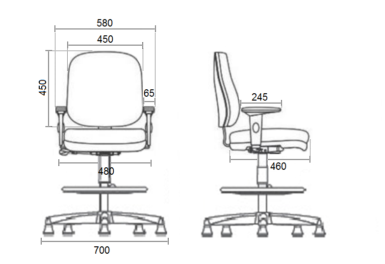 ■ Apoio de braços pretos com regulagem de altura ou braços fixos sem regulagem.