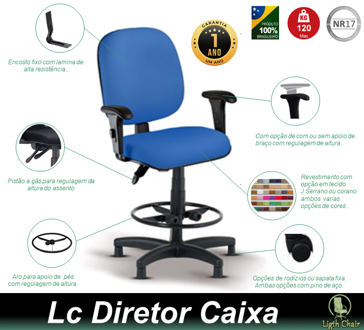 Obs: Aqui na Light Chair o cliente pode personalizar sua cadeira. Veja as opções