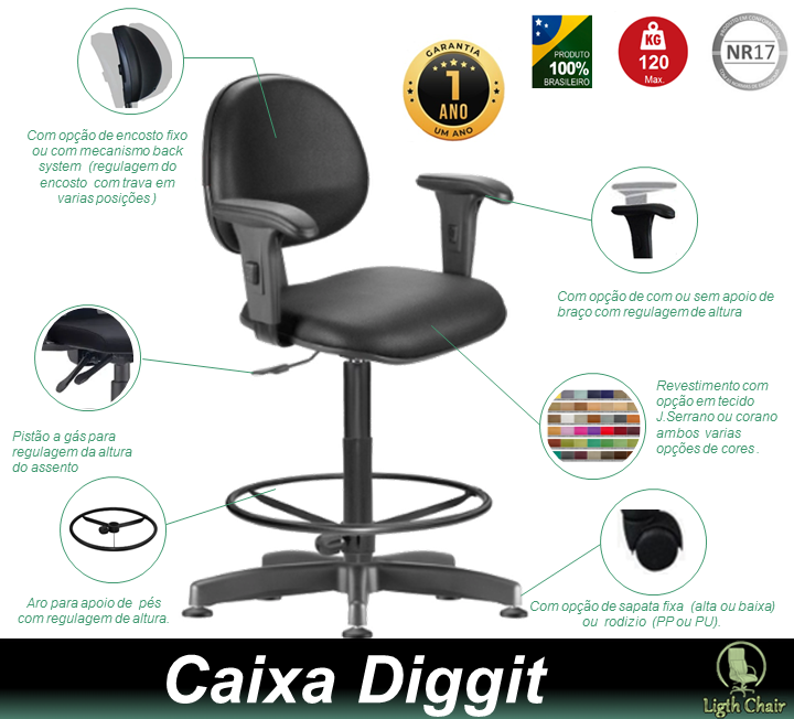 Obs: Aqui na Light Chair o cliente pode personalizar sua cadeira. Veja as opções