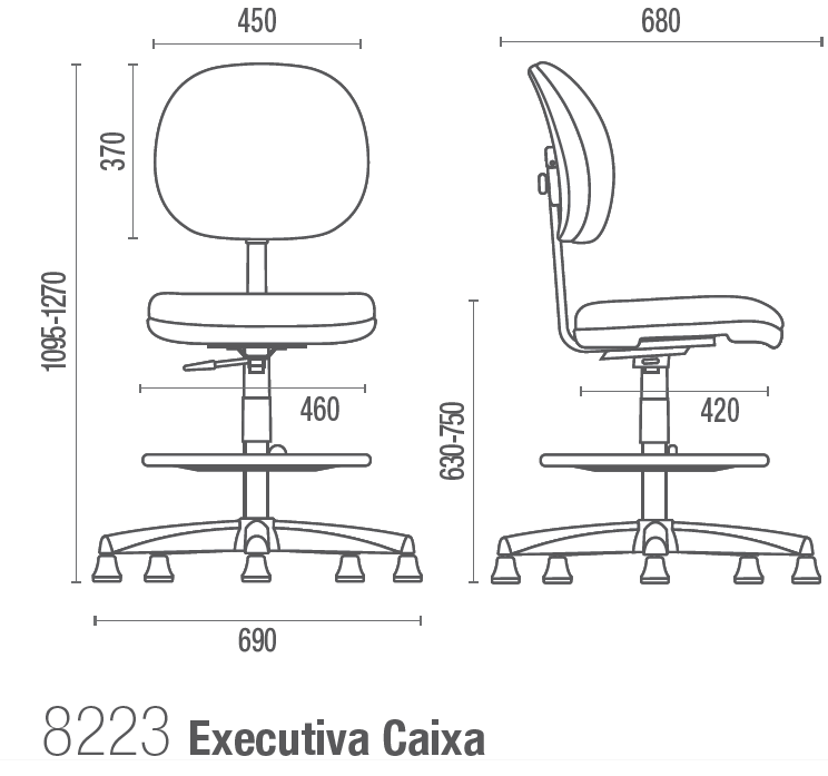■ Apoio de braços pretos com regulagem de altura. (Com opção de braços fixos sem regulagem) ou sem apoio de braço.