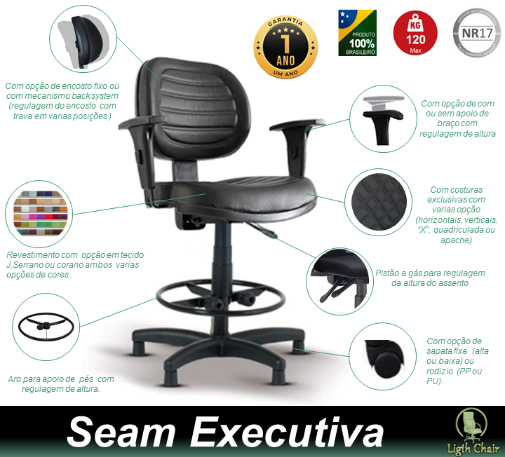 Obs: Aqui na Light Chair o cliente pode personalizar sua cadeira. Veja as opções