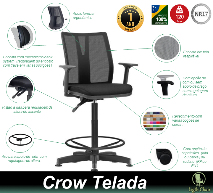 Obs: Aqui na Light Chair o cliente pode personalizar sua cadeira. Veja as opções