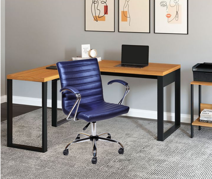 ■ Braços fixos cromados com detalhe em PU (emborrachado) na cor do revestimento da cadeira.