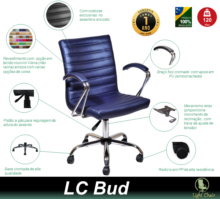 Obs: Aqui na Light Chair o cliente pode personalizar sua cadeira. Veja as opções