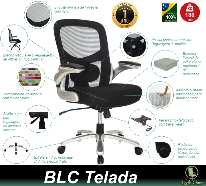Obs: Aqui na Light Chair o cliente pode personalizar sua cadeira. Veja as opções