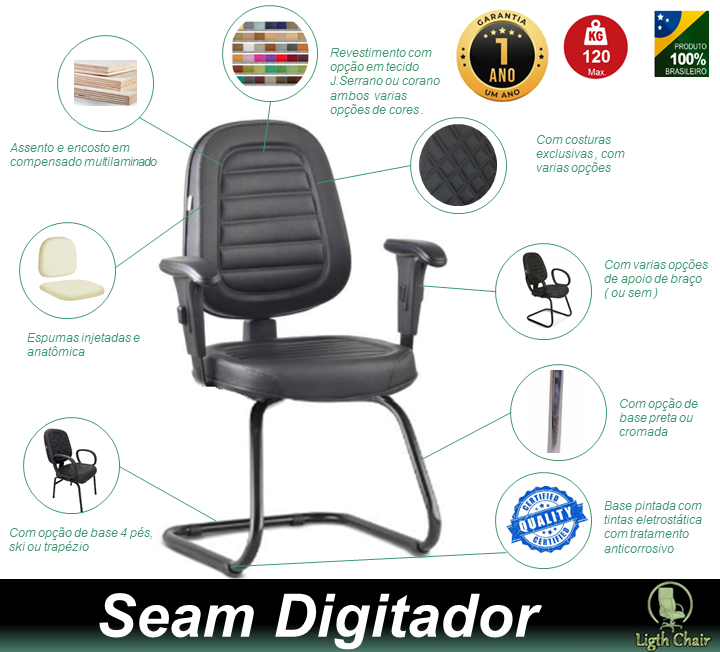 Obs: Aqui na Light Chair o cliente pode personalizar sua cadeira. Veja as opções