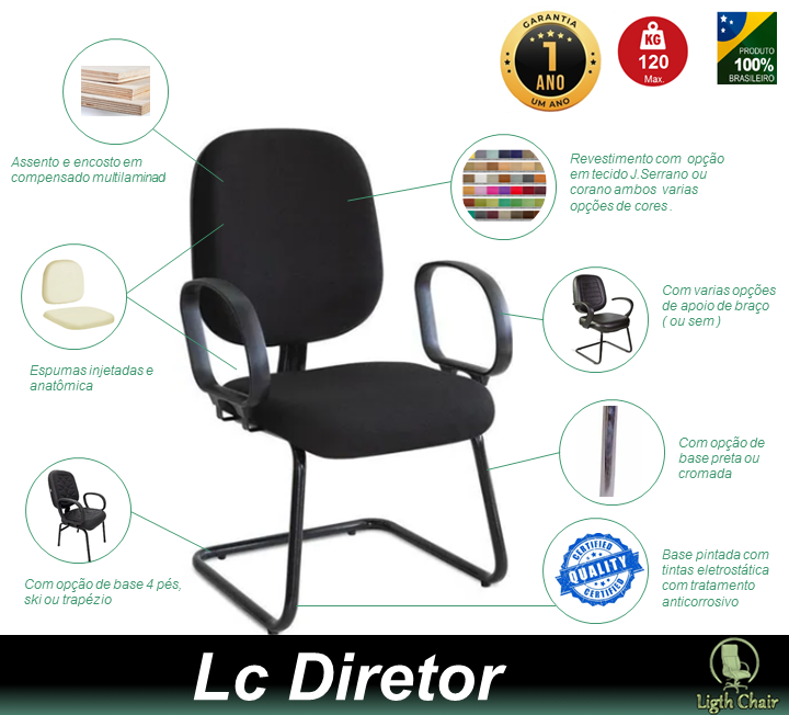 Obs: Aqui na Light Chair o cliente pode personalizar sua cadeira. Veja as opções