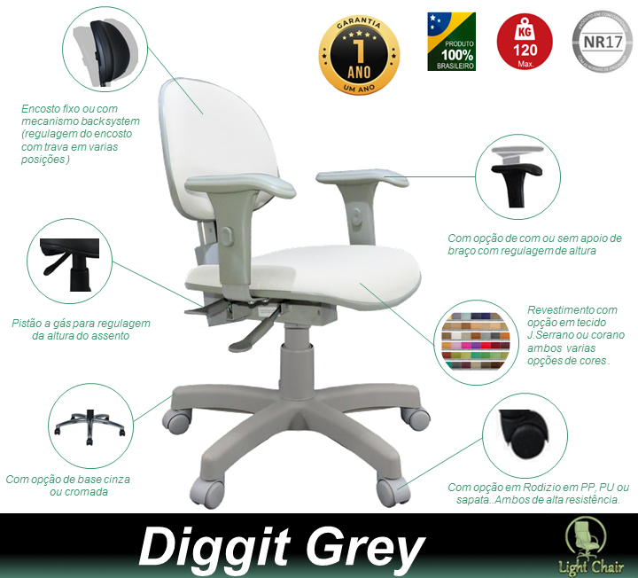 Obs: Aqui na Light Chair o cliente pode personalizar sua cadeira. Veja as opções