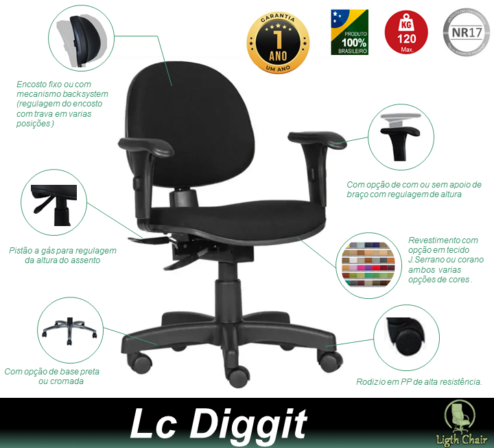 Obs: Aqui na Light Chair o cliente pode personalizar sua cadeira. Veja as opções