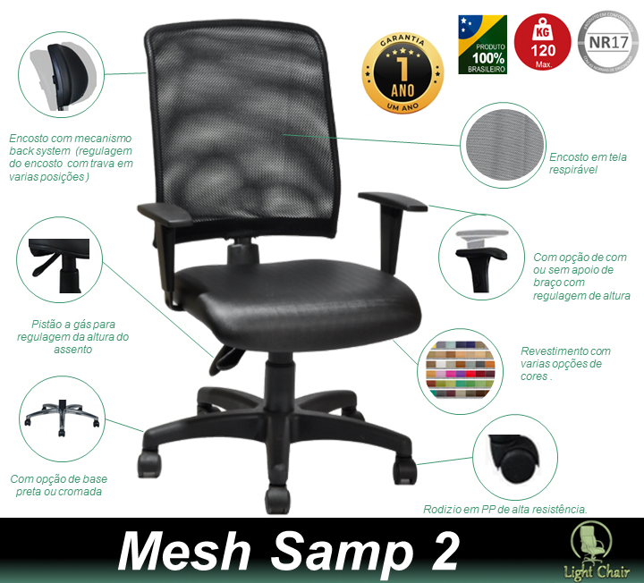 Obs: Aqui na Light Chair o cliente pode personalizar sua cadeira. Veja as opções