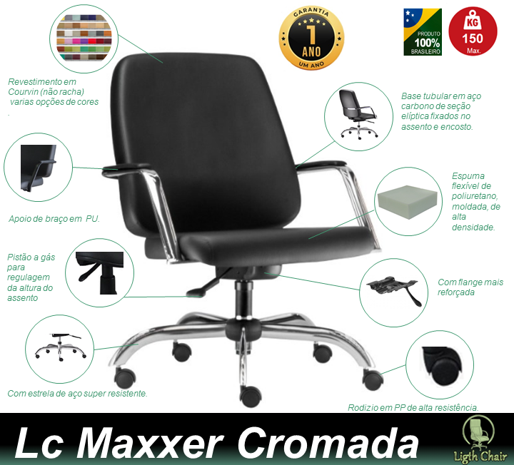 Obs: Aqui na Light Chair o cliente pode personalizar sua cadeira. Veja as opções