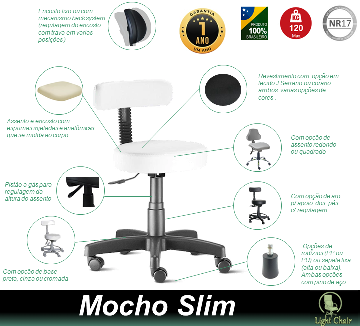 Obs: Aqui na Light Chair o cliente pode personalizar sua cadeira. Veja as opções