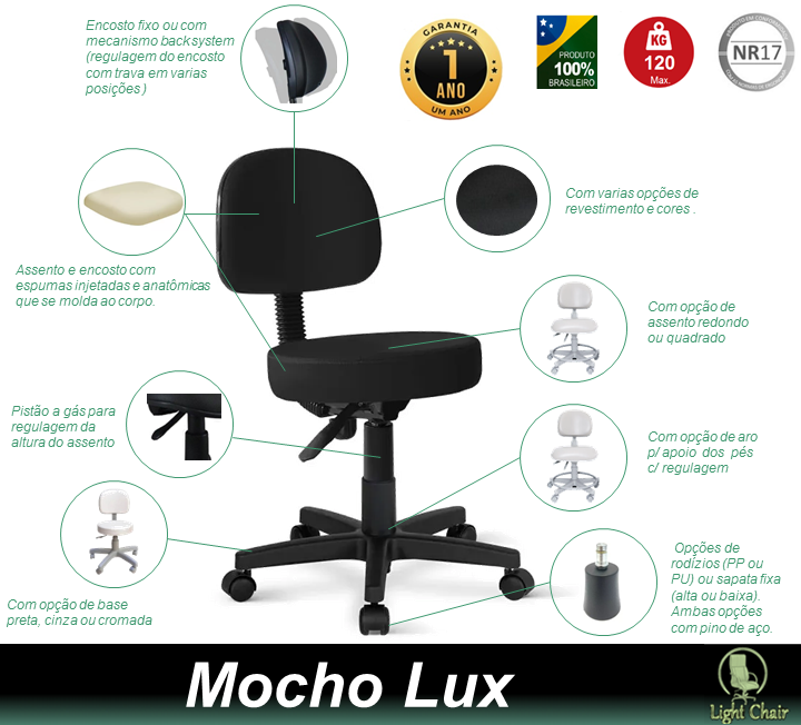 Obs: Aqui na Light Chair o cliente pode personalizar sua cadeira. Veja as opções
