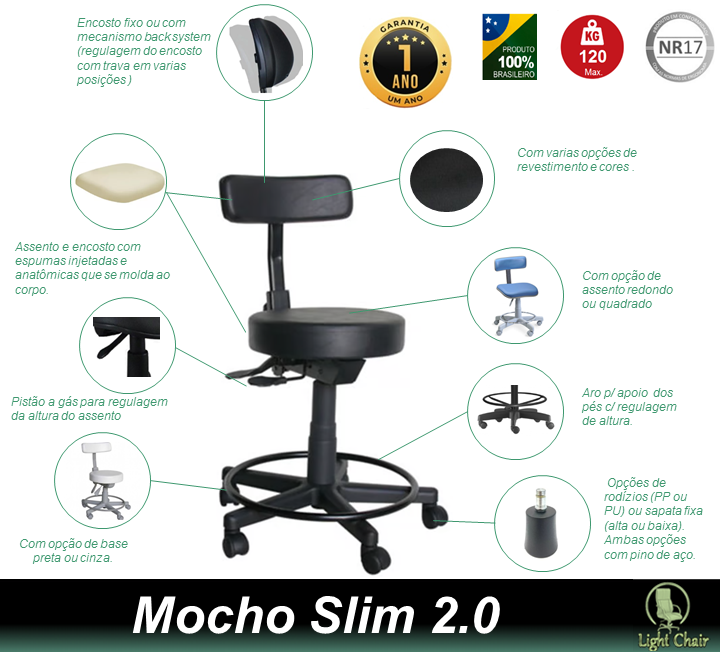 Obs: Aqui na Light Chair o cliente pode personalizar sua cadeira. Veja as opções