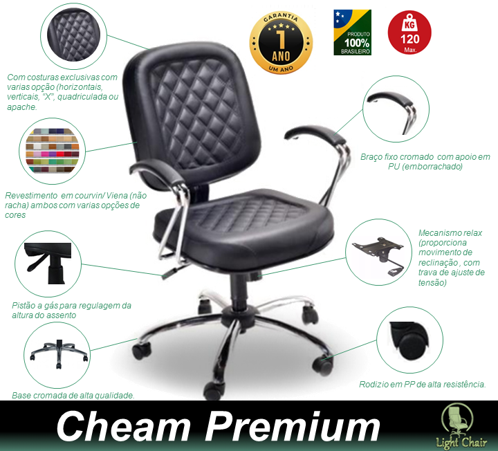 Obs: Aqui na Light Chair o cliente pode personalizar sua cadeira. Veja as opções