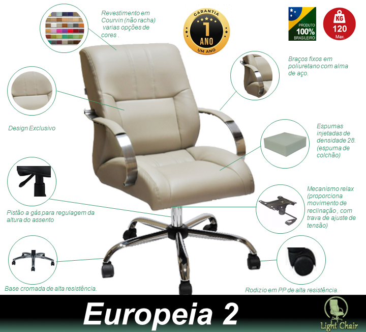 Obs: Aqui na Light Chair o cliente pode personalizar sua cadeira. Veja as opções