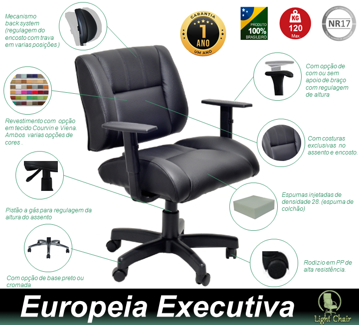 A cadeira Europeia Executiva possui: