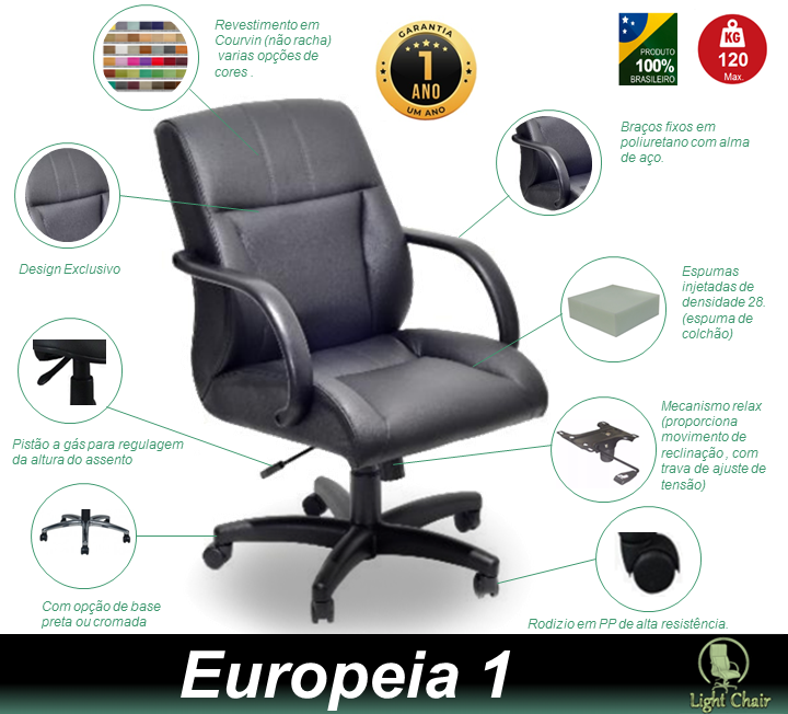 Obs: Aqui na Light Chair o cliente pode personalizar sua cadeira. Veja as opções