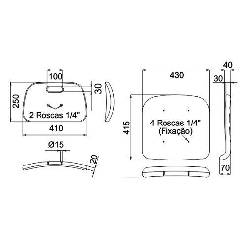 ■ Características técnicas: Assento: 42 x 42 x 3 (espessura) cm / encosto: 42 x 28 x 3 (espessura) cm / Altura do assento - Mínima: 46 cm / Máxima 55 cm: (alturas menores ou maiores sob consulta)