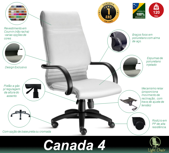 Obs: Aqui na Light Chair o cliente pode personalizar sua cadeira. Veja as opções