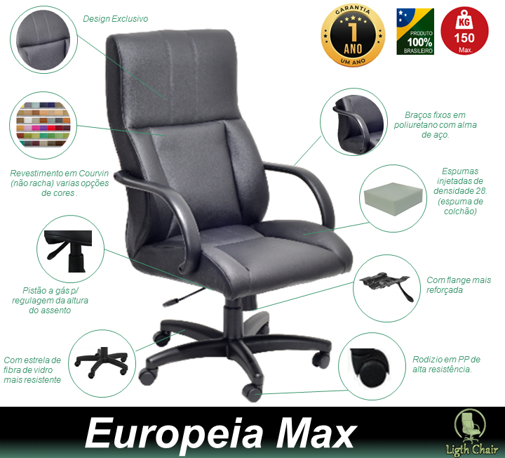 Obs: Aqui na Light Chair o cliente pode personalizar sua cadeira. Veja as opções