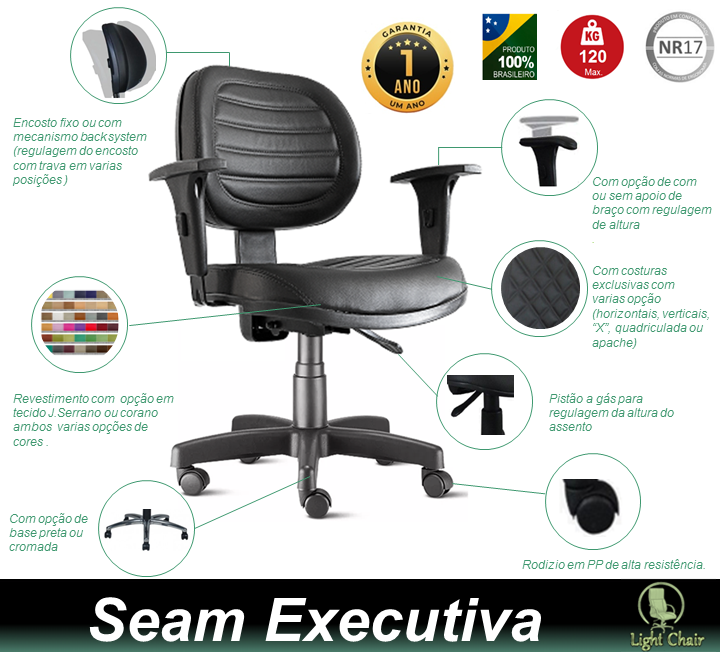 ■ Costuras exclusivas com várias opções. (Consulte as opções clicando no botão PERSONALIZE SUA CADEIRA).