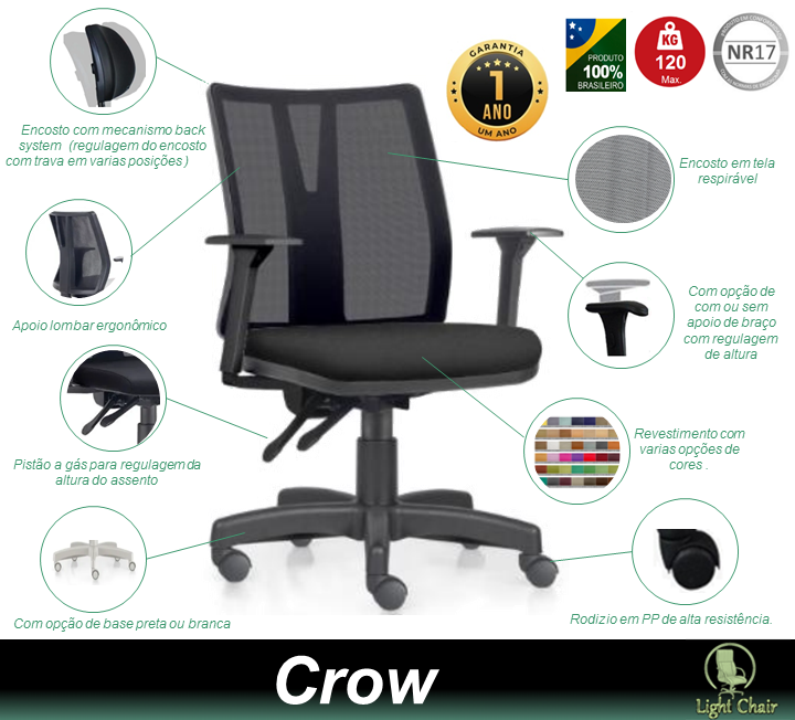 Obs: Aqui na Light Chair o cliente pode personalizar sua cadeira. Veja as opções