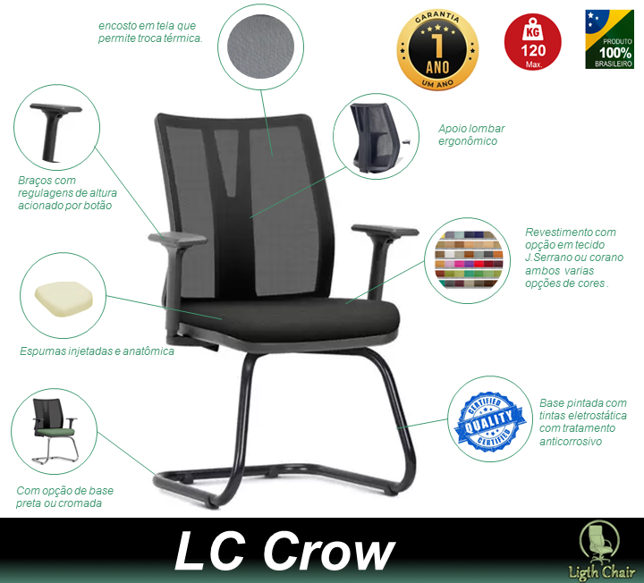 Obs: Aqui na Light Chair o cliente pode personalizar sua cadeira. Veja as opções