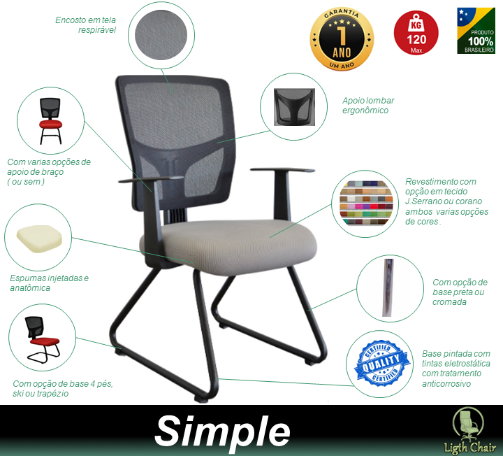 Obs: Aqui na Light Chair o cliente pode personalizar sua cadeira. Veja as opções