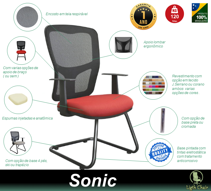 Obs: Aqui na Light Chair o cliente pode personalizar sua cadeira. Veja as opções