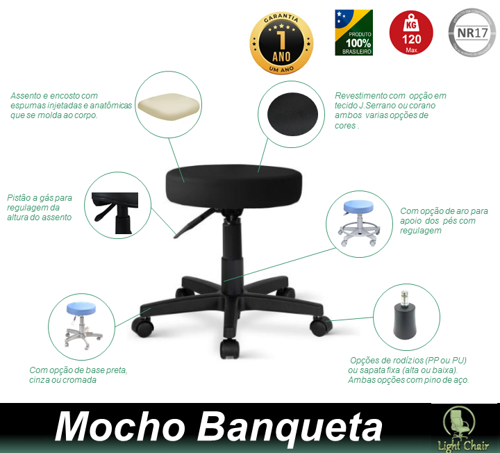 Obs: Aqui na Light Chair o cliente pode personalizar sua cadeira. Veja as opções