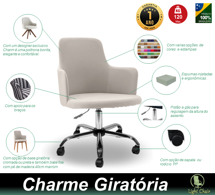 Obs: Aqui na Light Chair o cliente pode personalizar sua cadeira. Veja as opções