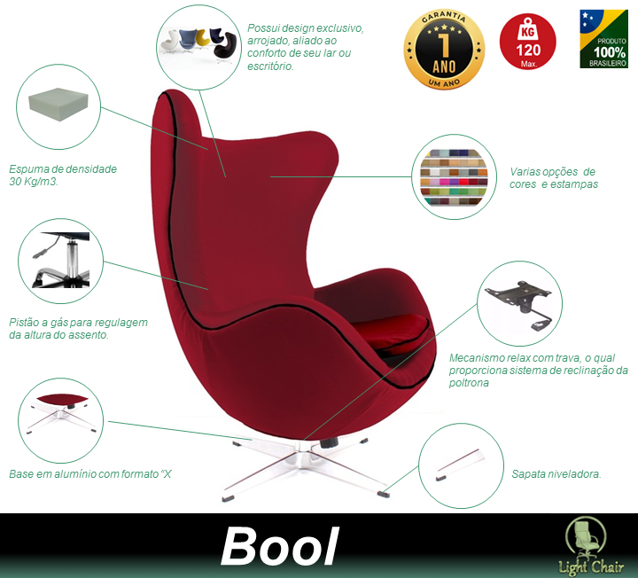 Obs: Aqui na Light Chair o cliente pode personalizar sua cadeira. Veja as opções