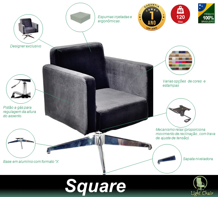 Obs: Aqui na Light Chair o cliente pode personalizar sua cadeira. Veja as opções