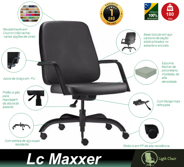 Obs: Aqui na Light Chair o cliente pode personalizar sua cadeira. Veja as opções